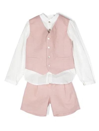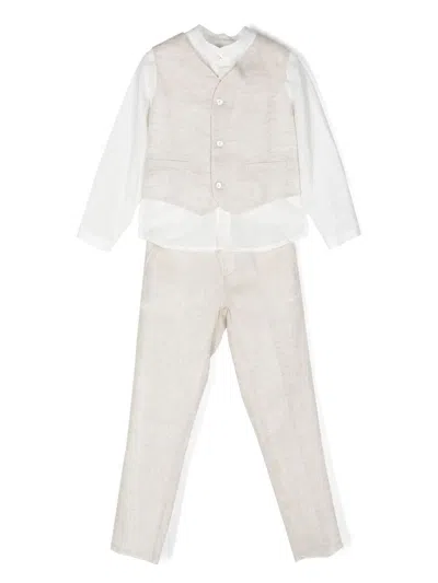Kids' Three-piece Linen Suit In Neutrals