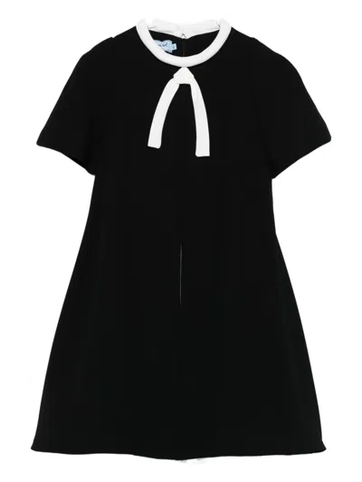 Kids' Floral-laced Bow-detailing Dress In Blue