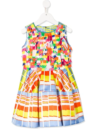 Kids' Floral-embroidered Ruffled Dress In Yellow