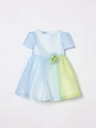 Kids' Floral-laced Bow-detailing Dress In Blue