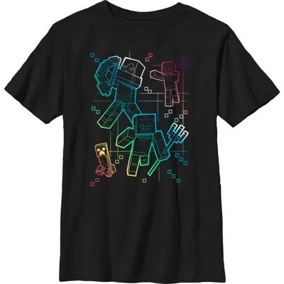 Kids' Boy's Rainbow Characters Lines Graphic T-shirt In Black