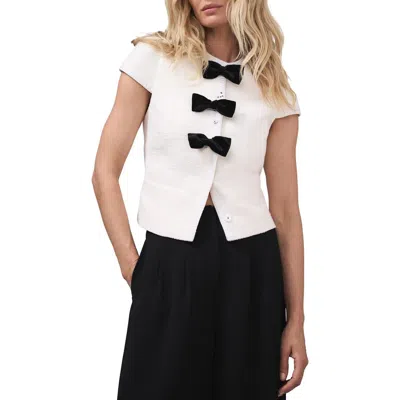 Boucle Bow Detail Top In White