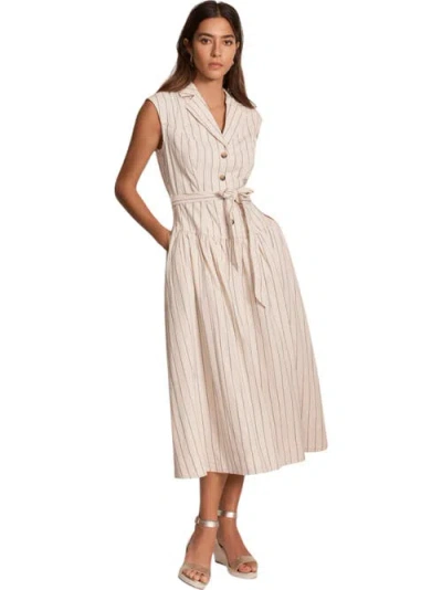 Drop Waist Stripe Midi Dress In Neutral