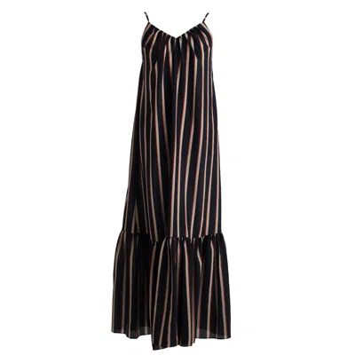 Women's Maxi Silk Dress With Vertical Red Stripes