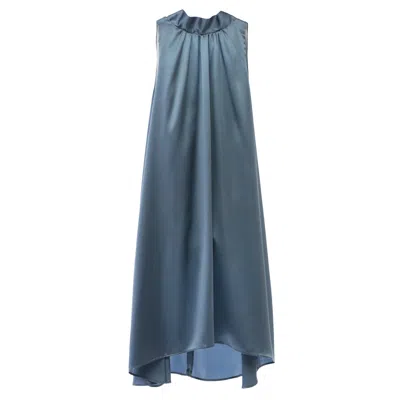 Women's Blue Silk Dress With White Collar
