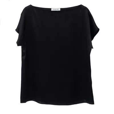 Women's Silk Boat Neckline Blouse - Black
