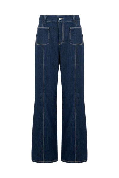 Women's Blue Denim Jean With Patch Pockets & A Bootcut Leg