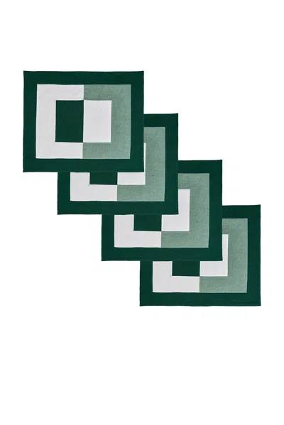 Set-of-four Jardin Embroidered Linen Placemats In Green