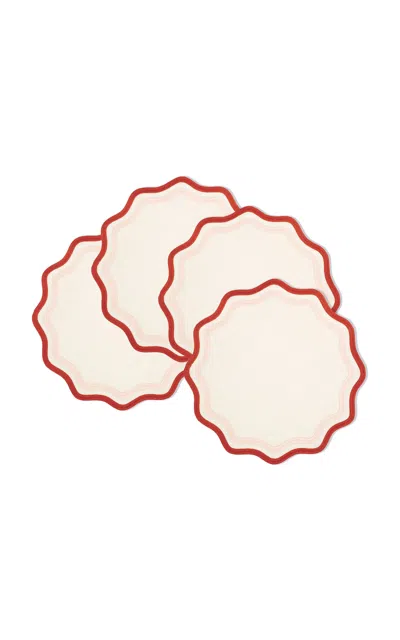Contrasting Trim Wavy Placemats Set Of 4 In Red