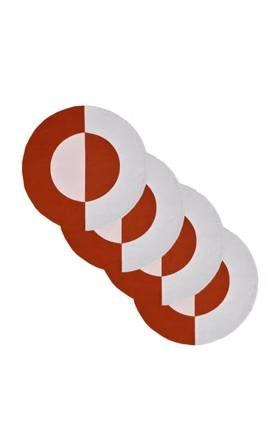 Set-of-four Embroidered Linen Round Placemats In Multi