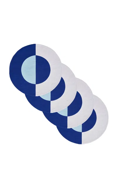 Set-of-four Embroidered Linen Round Placemats In Blue