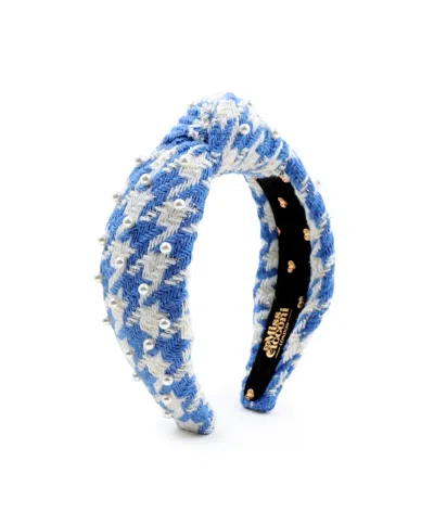 Women's Gold / Blue / White Lexy - Blue & White Houndstooth Woven Wool Knotted Headband With A Gold In Multi