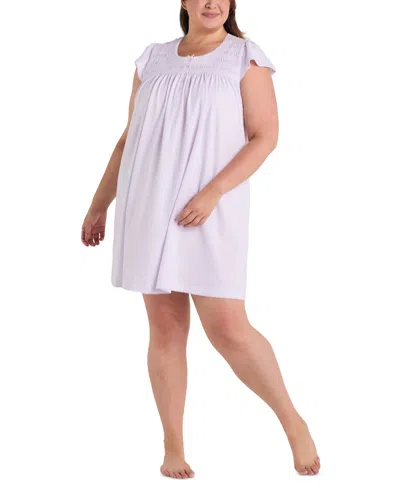 Plus Size Embroidered Short-sleeve Nightgown In Purple