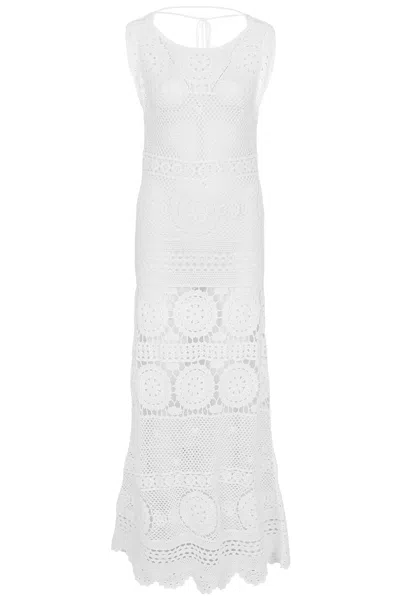 Crochet Beach Dress In Angel White | Sleeveless, Round Neck & Keyhole Back With Ties | Embroider