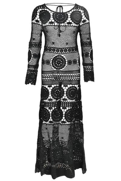 Long Sleeve Crochet Dress | Stylish Open Back | Embroidered & Scalloped Hems | Keyhole Back With In Black