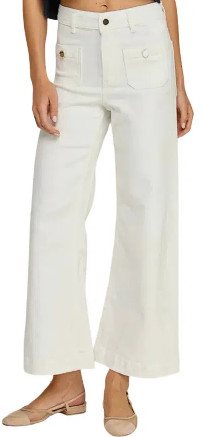 Flap Pocket Wide Leg Jeans In Off White