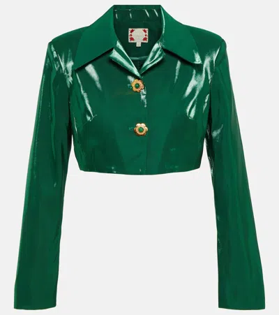 The Vanguard Cropped Embellished Metallic Silk Top And Jacket Set In Green