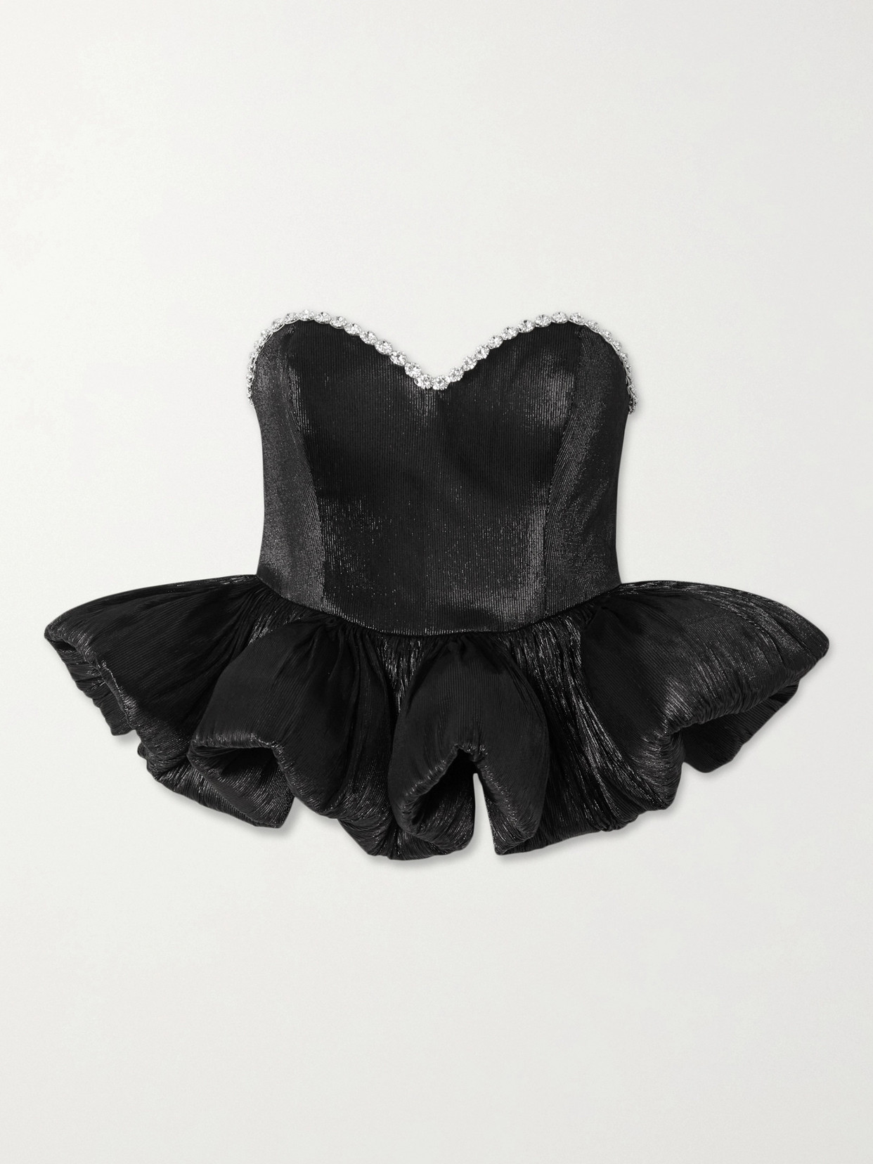 + The Vanguard Embellished Plissé-lamé Peplum Top In Black