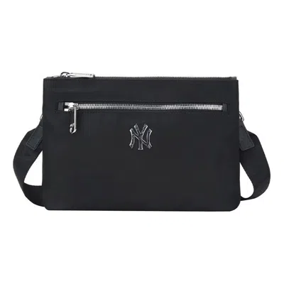 Ny New York Yankees Silver Logo Zipper Shoulder Messenger Bag Black