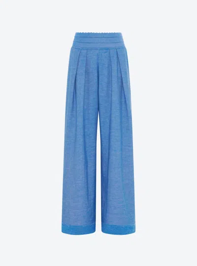 Women's Fluid Pleated Trousers In Royal Blue Denim
