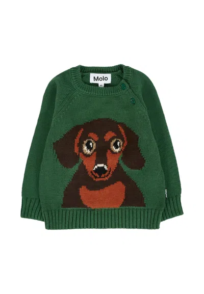 Babies' Dachshund-intarsio Sweater In Green