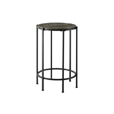 Accent Table, End, Round Dark Bronze Laminate, Black Metal, Contemporary