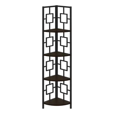 Bookshelf, Bookcase, Etagere, Corner, 4 Tier, 60h, Office, Bedroom, Brown Lamin