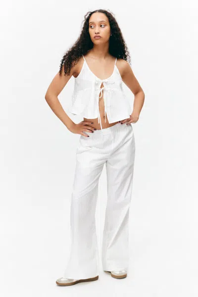 Mix And Match Poplin Cami Pajama Top With Tie Front Detail In White