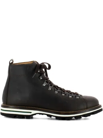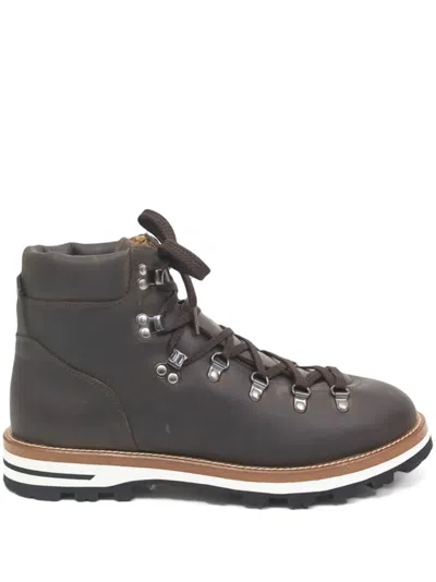 Lace-up Leather Boots In Brown