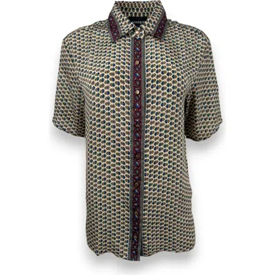 Embossed Botanical Short Sleeve Crepe Shirt In Brown