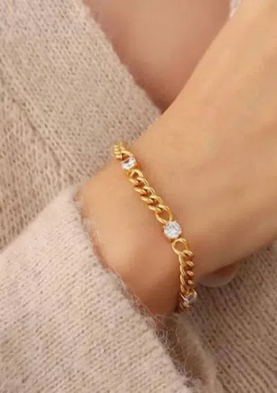 18k Gold Plated Cz Cuban Bracelet In Silver