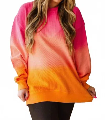 Ombre Corded Sweatshirt In Deep Pink To Orange