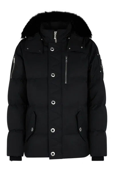 Quilted Down Jacket With Detachable Fur-trimmed Hood In Black