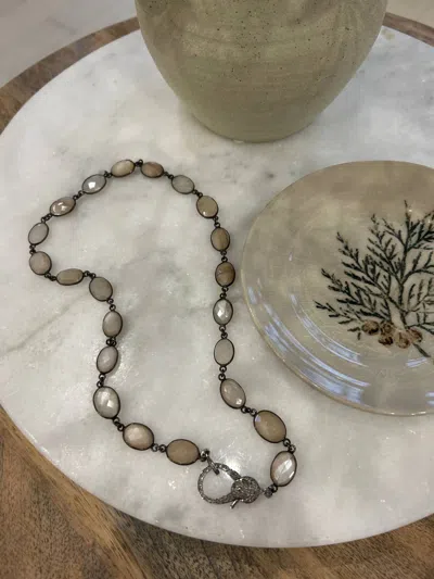 Women's Moonstone With Pave Diamond Lobster Clasp Necklace In Silver