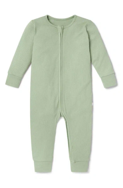 Kids' Clever Zip Fitted One-piece Pajamas In Ribbed Sage