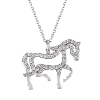 Pre-owned 0.25 Carat Natural Diamond Horse Necklace Pendant 14k White Gold Si