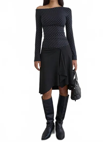 Hoang Slouch Top In Oblique Stripe Ocean Storm In Black