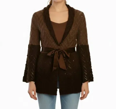 Knitted Bell Sleeves And Tie Front Sweater In Brown