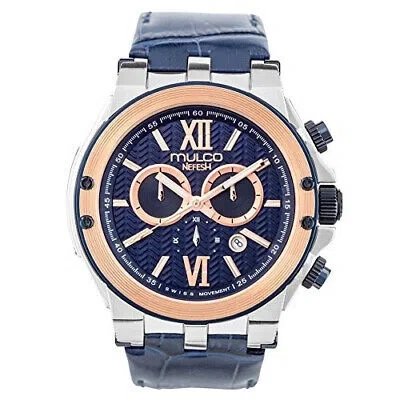 Pre-owned Nefesh Iconic Blue Dial Blue Leather Band Analog Watch Mw1-35199-043