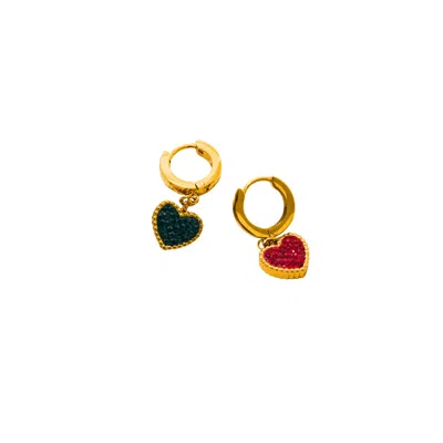 Women's Gold / Black / Red Dualis Heart Earrings In Multi