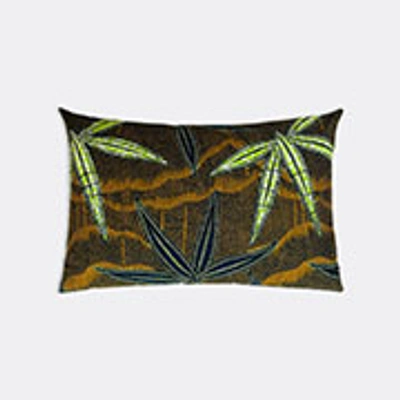 Iki Aloe Vera Lime Leaf-print Wool Cushion In Brown