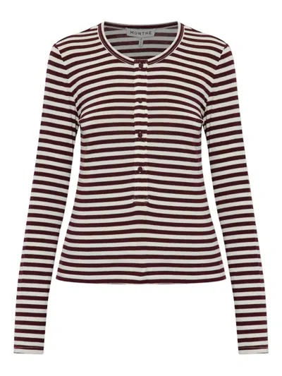 Striped Buttoned Long-sleeved T-shirt In Brown
