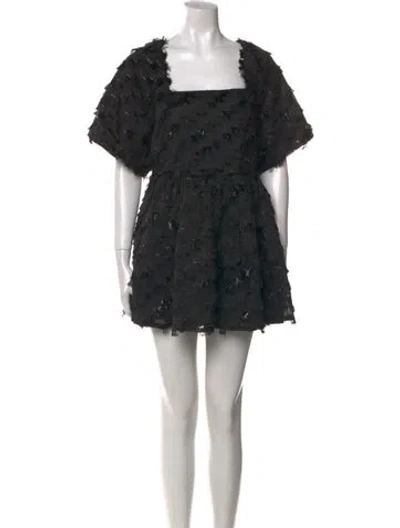 Pre-owned Black/gold Leaf Embroidered Lace Mini Skirt M