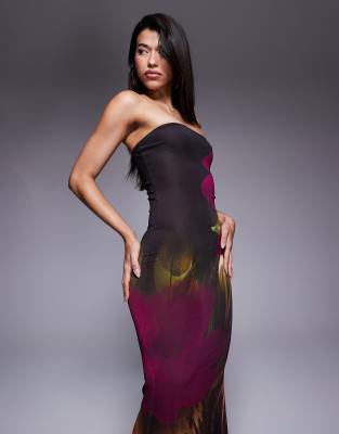 Exclusive Mesh Bandeau Fishtail Maxi Dress In Red