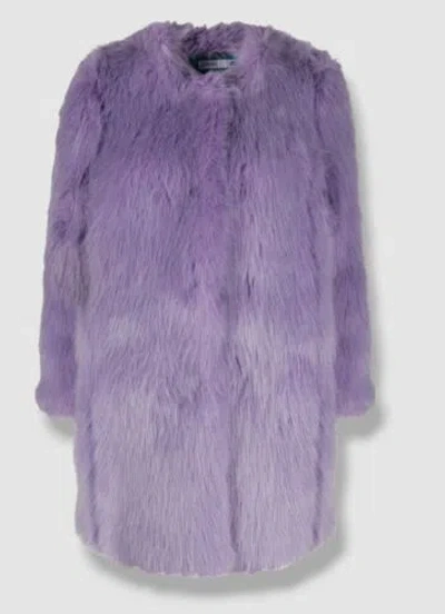 Pre-owned $1450 Alabama Italy Women's Purple Faux-fur Kate Long Coat Jacket Size 44