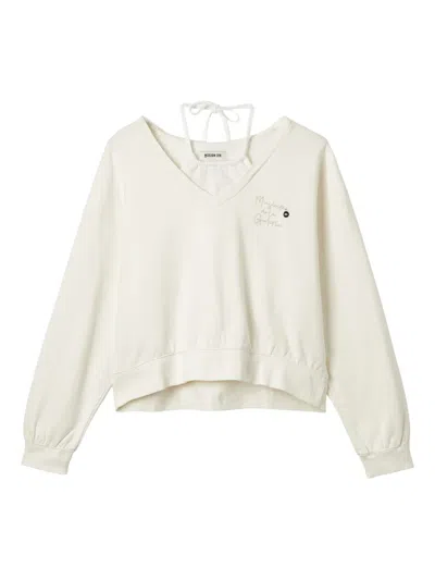 Bead Embellishment Cotton Sweatshirts In White