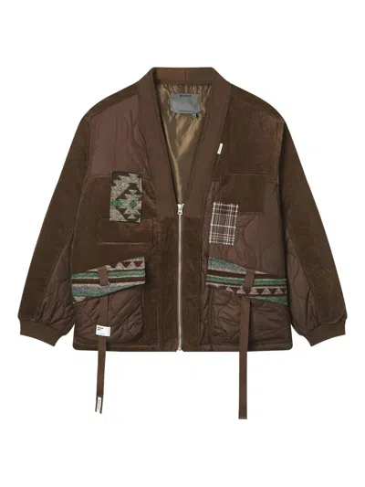 Corduroy Quilted-panel Jacket In Brown