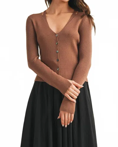 Laura Layered Cut Out Cardigan In Mocha Mousse In Brown