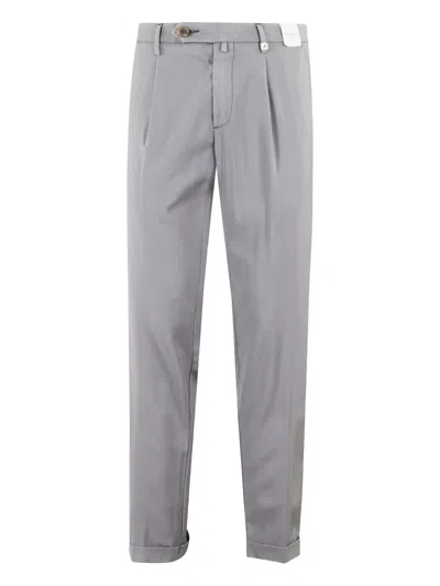 Medium Grey Chino Trousers With Pleated Legs In Gray