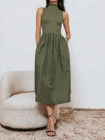 Mock Neck Maxi Dress In Martini Oives In Green